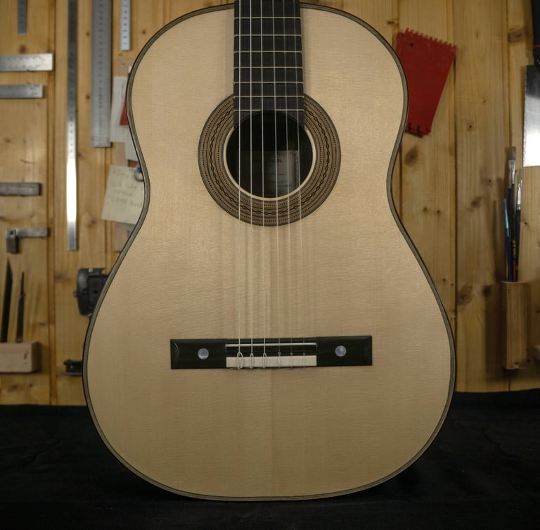 Starting with the shape, which recalls tradition, in particular that of the Spanish guitar, with a clear reference to Maestro Antonio de Torres. The materials used are different, but I have chosen woods that have always been used in the construction of classical guitars.